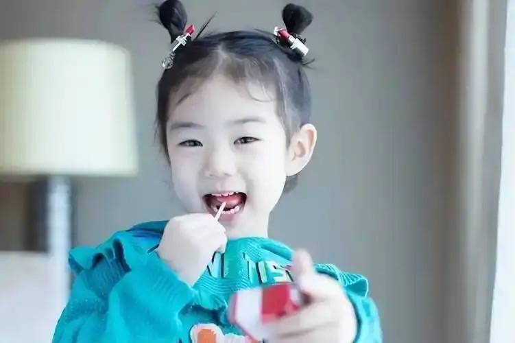 Lucky很小的时候,就喜欢偷拿妈妈的化妆品,在自己的小脸上抹来抹去。