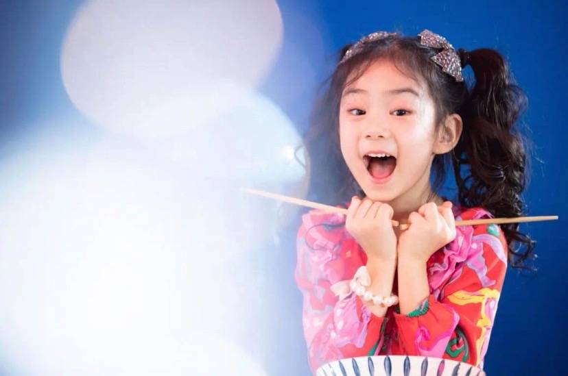 喜欢扎两个小啾啾,脸上有一点婴儿肥,眼睛大大的、皮肤白白的,特别可爱。