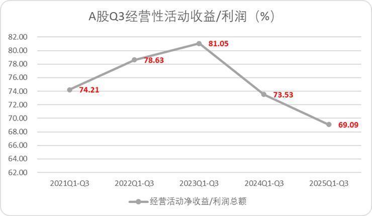 那么维持收益稳定性的经营性活动收益占比自然表现不会太好,今年前三季度经营性收益和利润的比值不足7成,创五年新低,后续还要观察今年三季度业绩表现是否具备可持续性。